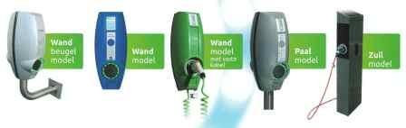 EV-box levert een volledig assortiment laadstations en laadoplossingen, wandmodellen, paalmodelen, laadzuilen in diversen vermogens, met of zonder vaste kabel en in diverse kleuren
